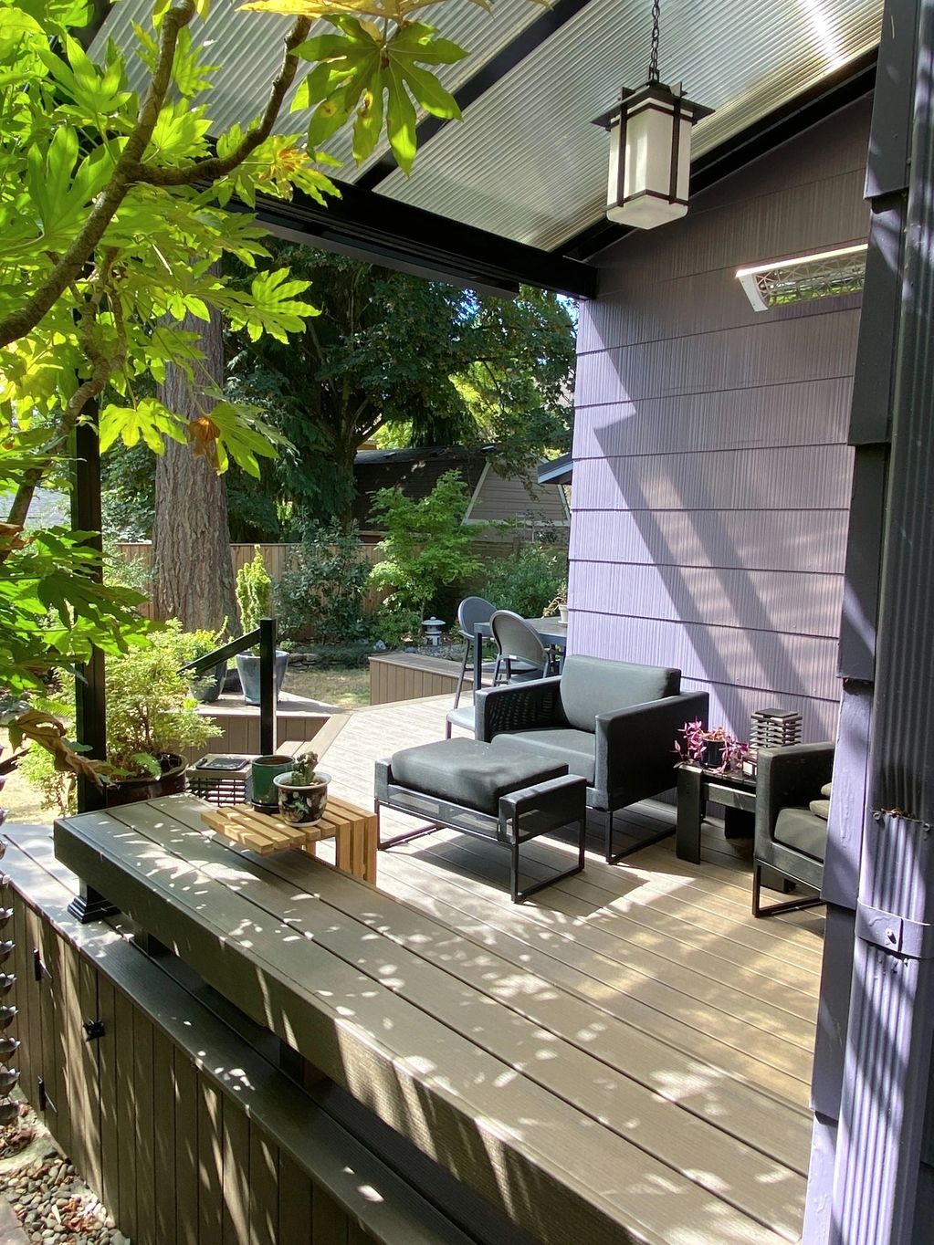 This NE Portland project was designed around the desire for a hot tub. This complete re-build provides a covered space for lounging. The AZEK decking will provide a lifetime of maintenance-free living space.